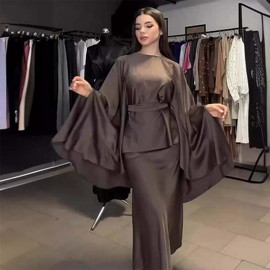 Lässiges, lockeres 2-teiliges Outfit für Damen aus Satinoberteil und -hose