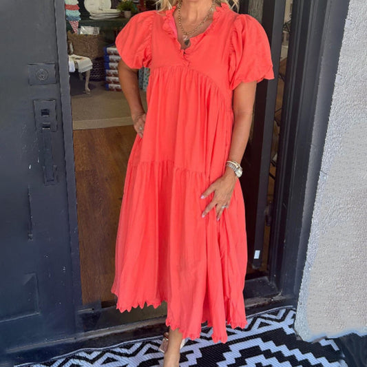 V-Neck Ruffle Hem Midi Dress