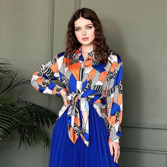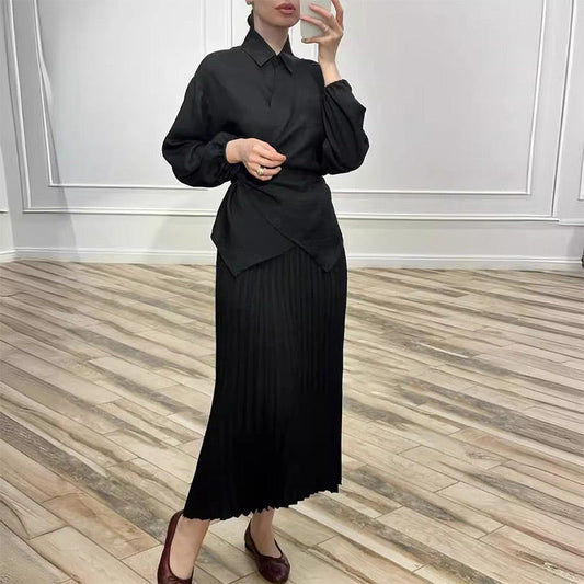 Elegantes 2-teiliges Set mit Hemd mit Taillengürtel und Faltenrock