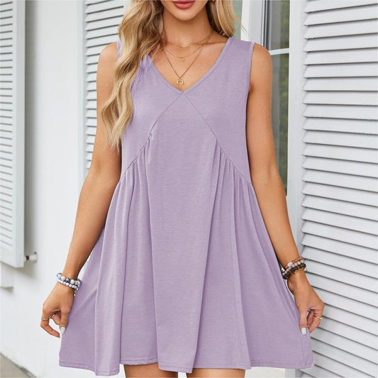 💥49% Rabatt 💥Damen V-Ausschnitt Ärmelloses Weste Lose gefaltetes Kleid