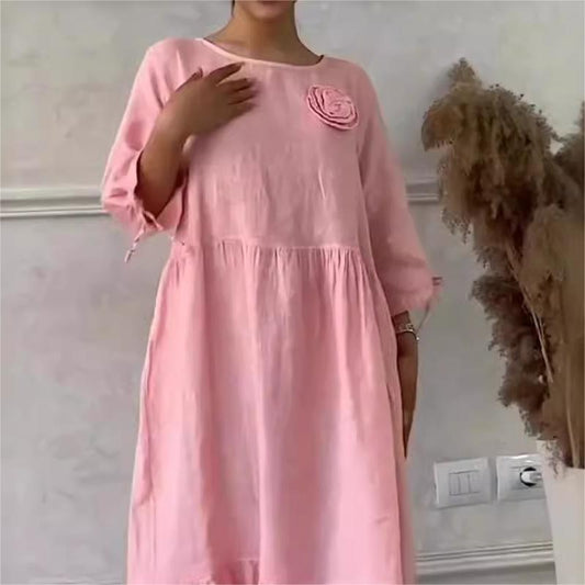 🌻49% Rabatt 🌦️Elegantes Kleid mit floralen Kordelärmeln in Uni-Farbe