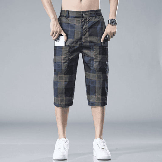 Lässige karierte 3/4 Shorts mit geradem Bein für Männer
