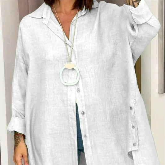 Lässiges, einfarbiges Langarm-Button-Down-Hemd für Damen