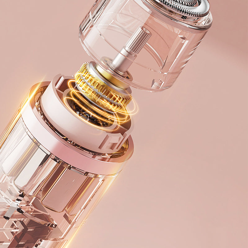 DOPPELKOPF-DESIGN: Jeder Kopf dient einer bestimmten Funktion - einer für feinere Bereiche wie Achselhöhlen und Bikinizone, der andere für größere Bereiche - und gewährleistet so eine effektive Haarentfernung am ganzen Körper.