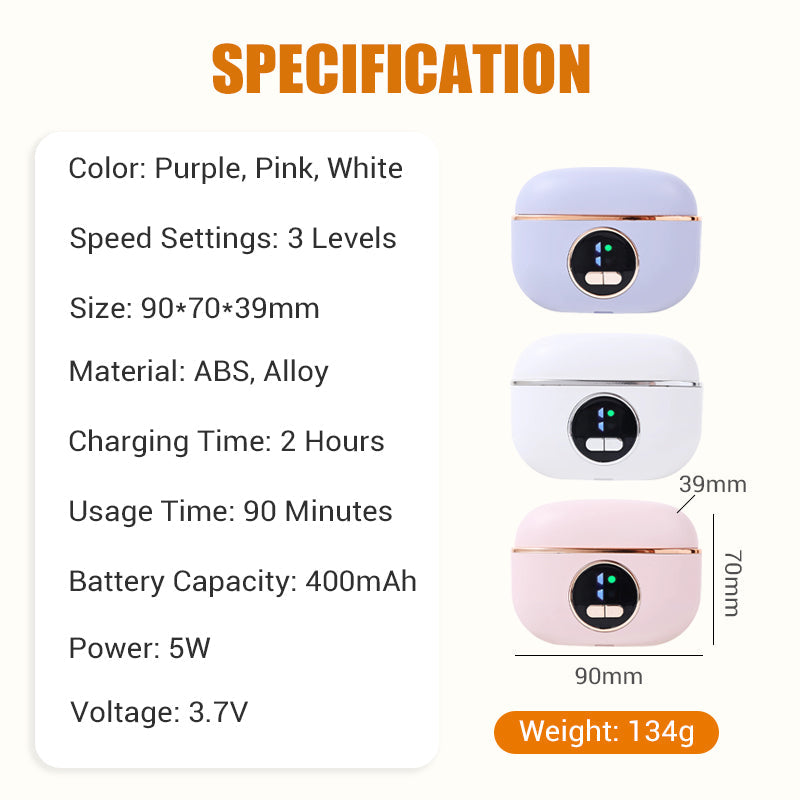 KOMPAKT UND AUFLADBAR: Dank seines leichten, tragbaren Designs und des leistungsstarken Akkus eignet es sich ideal für den Einsatz zu Hause oder unterwegs. Genießen Sie nach einer einzigen Aufladung bis zu 90 Minuten kabellosen Betrieb für eine bequeme Nagelpflege überall.