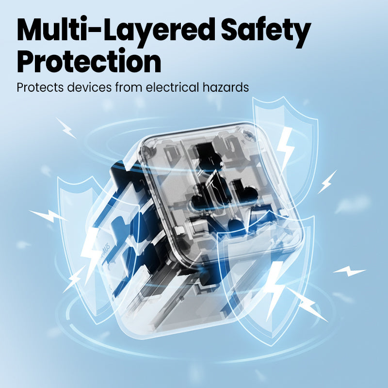 ADVANCED SAFETY SYSTEM - Integrates multiple protection mechanisms, including over-current, over-voltage, short-circuit, and over-temperature safeguards, ensuring stable and secure power delivery to protect your valuable electronic devices from damage.