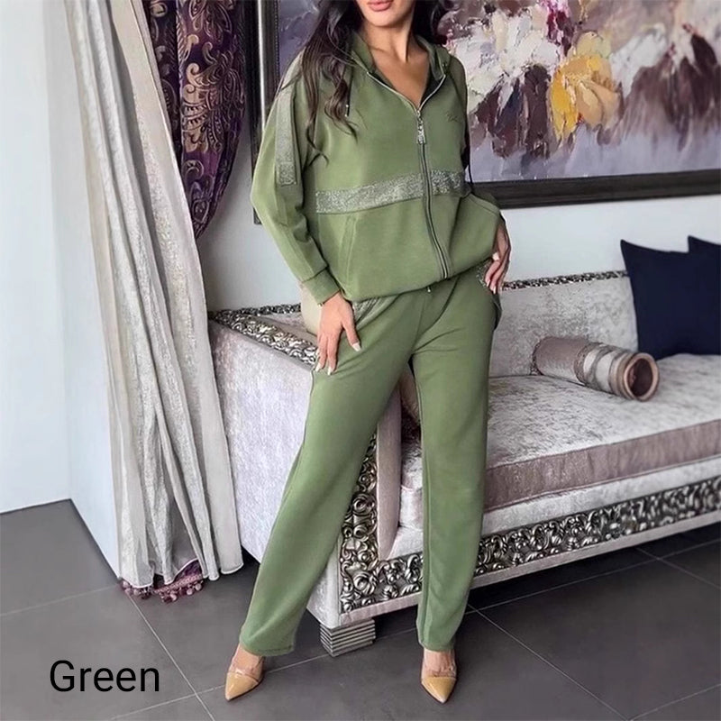 🎄🔥Damen Pailletten -Verziertes einfarbiges lässiges 2-teiliges Set