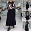 EINZIGARTIGES KLEID IN LAYERING-OPTIK: Eine leichte bedruckte Chiffon-Schicht fällt elegant über das einfarbige schwarze Midikleid und verleiht Tiefe und Kontrast.